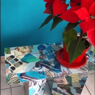 Recyclage de papier issue de photos, articles et publicités de presse, soigneusement sélectionnées et découpées en arrachage par thèmes et couleurs.